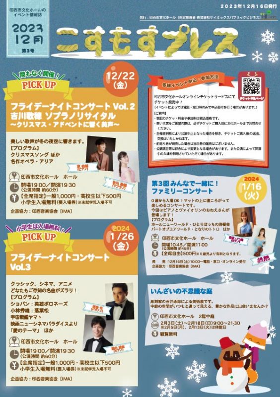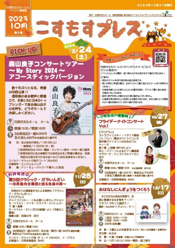 印西市文化ホールのイベント情報誌「こすもすプレス」
